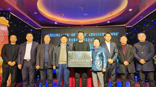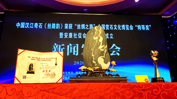 11月19日,安康市社区文化建设促进会举行“汉江奇石《丝路韵》荣获‘丝绸之路’全国赏石文化博览会特等奖暨安康市社促会奇石协会成立大会”新闻发布会。市政协原副主席李启良、黄秀玲到会祝贺。安康籍著名男高音歌唱家、声乐教育家周发猛以及市级相关部门、新闻媒体和部分石友参加新闻发布会。