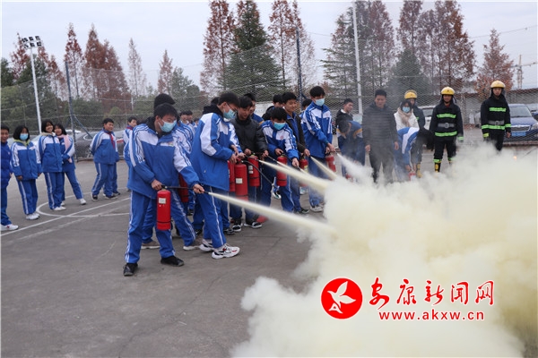 随后,在篮球场进行了如何正确使用灭火器扑灭火源的操作方法演示,同学们仔细聆听,牢记每一个步骤,认真学习掌握灭火器的使用方法:提、拔、握、拉。并有序上前,进行了灭火器灭火的实践操作,大家齐心协力瞬间将一盆大火扑灭。