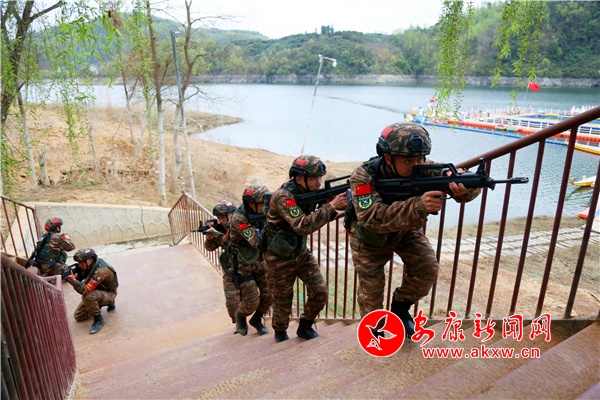 “消灭‘ 犯罪分子’,迅速解救人质!”一场以劫持人质事件为背景的城市反恐捕歼战斗在武警陕西总队安康支队特战训练中拉开帷幕。连日来,该支队利用不同地域,组织特战官兵围绕城市反恐训练课题,进行侦察、狙击、排爆等多个课目训练,不断锤炼特战队员在复杂多变环境下的反恐作战能力,全面提升特战分队实战化训练水平。(摄影/赵坤)sTa安康新闻网