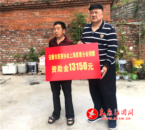 本网讯(通讯员 张蕾)5月12日,安康市慈善协会上海慈善分会会长、上海曼登实业有限公司董事长于登玉,上海慈善分会副会长、上海浦东新区周浦医院总经理周康瑞来到安康,为汉滨区江北办长征村二组的周启均老人送来慰问金13150元。