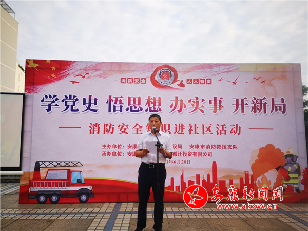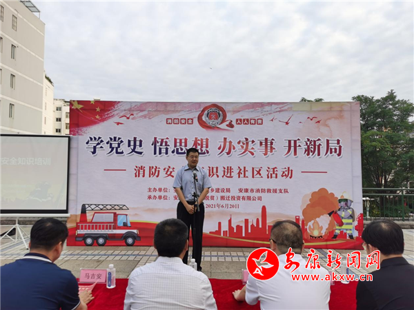 本网讯(通讯员 向桥)6月20日,“学党史 悟思想 办实事 开新局,消防安全知识进社区”宣讲活动启动仪式在山水上城小区启动。市住建局(市人防办)副局长(副主任)段平安出席会议并讲话,市移民搬迁公司副总经理宋国卿致辞,市消防救援支队、市移民搬迁公司和社区、小区居民60余人参加活动。