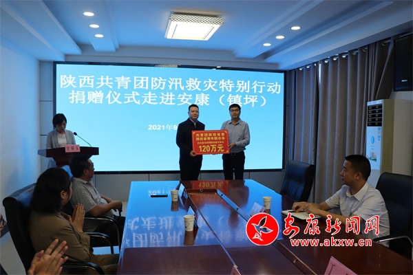 捐赠仪式上,李建峰向团安康市委转交了向安康捐赠防汛救灾资金120万元的捐赠牌,李宗际向镇坪县转交了捐赠50万元防汛救灾资金的捐赠牌,授予省青联副主席梁汝明、徐浩和中国农业银行陕西省分行、陕西中博农业科技发展有限公司、陕西中茂装饰集团有限公司等“‘陕西共青团防汛救灾特别行动’公益项目突出贡献单位(个人)”荣誉称号。