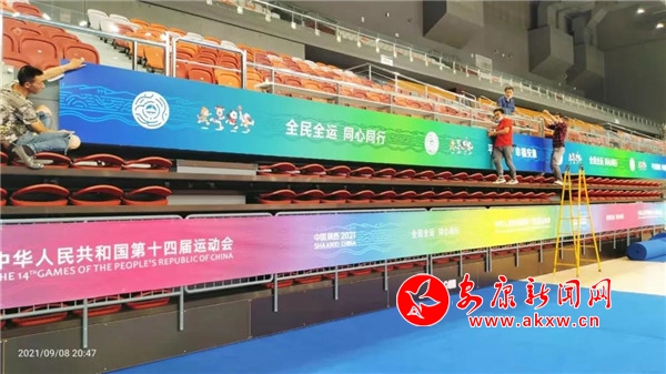 在接到赛事服务保障任务后,该公司领导班子高度重视,第一时间组织召开专题会议,成立领导小组,进行思想动员。在总结以往重大活动服务保障经验的基础上,制定了详细的工作方案和推进计划。有效的时间内高质量完成了董家沟路—长岭南路—机场大道的灯杆旗安装、火车站沿线氛围布置、场馆内外的氛围布置工作及场馆内地毯铺设、背景板、导视标识、围挡安装、媒体摄像地台搭建等景观布置任务。值得一提的是,在紧张繁忙的任务中,团队随时还要进行精细化整改,但每个人都毫无怨言,履职尽责,提供了优质高效服务,秉持“我的岗位我负责、我的阵地绝不失”的责任担当,为比赛营造了良好氛围,也为市民树立了一道道靓丽的风景线。