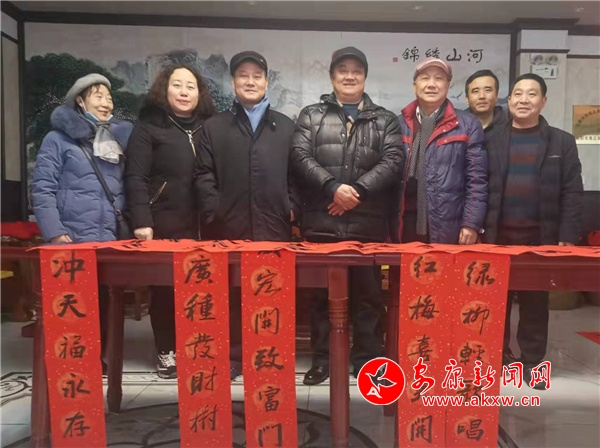 集福凝瑞楹联语,飞雪腊梅兆丰年。研究会会员和书法家们把美好祝福倾注笔端,将一幅幅饱含喜庆、满载祝福的春联送到了广阔农村和社区。