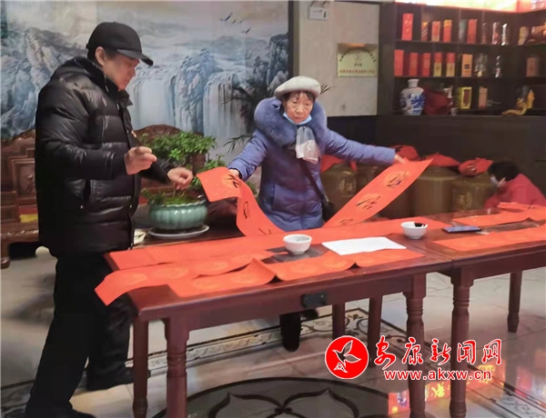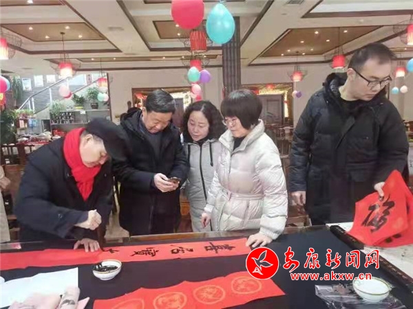 1月26日清早,研究会一行驱车50公里,来到神河镇海缘酒店,在大厅为神河敬老院及社区群众书写并赠送春联,“ 岁月无情催白首,东风有意焕青春”,即写即送,暖意融融。