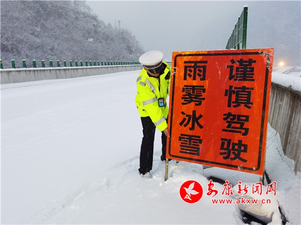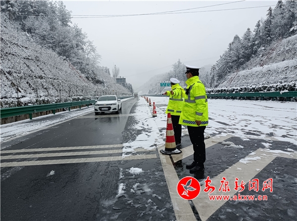 1月28日,我市普降雨雪,部分路段出现大雾、积雪。为有效应对恶劣天气对交通安全的影响,安康交警以雪为令,全警动员,强化恶劣天气下的道路交通管控、巡查、事故预防、保畅通等措施,确保辖区道路安全畅通和群众平安出行。(周瑞儒/图文)FZx安康新闻网