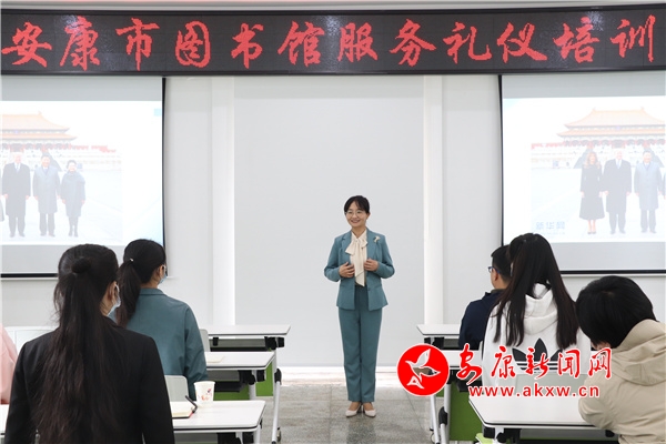 此次讲座由为安康学院马克思主义学院党总支书记、国家高级礼仪培训师田静老师主讲。市图书馆全体职工共40余人参加了此次培训。