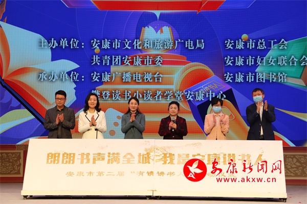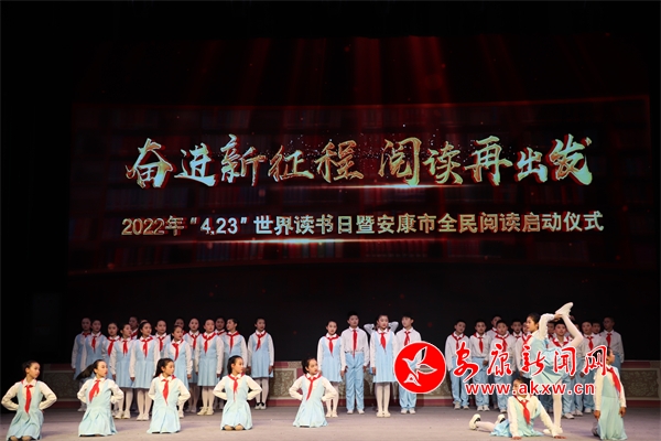 4月23日上午,以“奋进新征程 阅读再出发”为主题的4.23世界读书日暨安康市全民阅读活动启动仪式在安康汉江大剧院举行。仪式上,发布了2021年安康市图书馆阅读报告,对17个安康市“书香之镇(办)”、32个“书香之村(社区)”和86个“乡村书香家庭”进行了授牌;为2021年度优秀文化志愿者、优秀读者及“爱阅读 爱安康”——安康市版画藏书票艺术作品活动的优秀组织者、前三名获奖者分别颁发了证书;聘任彭文、韩治华、王雅莉、王文林、严宏涛、吴静6位同志为2022年度安康市图书馆阅读推广人。同时,启动了第二届“朗朗书声满全城,我是安康讲书人”活动。