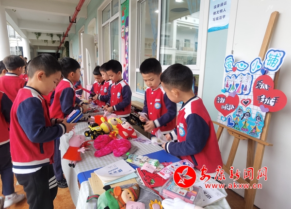 一声声稚气的叫卖、一个个热闹的场面、一张张快乐的脸庞,充分展示了“爱心义卖”活动给孩子们带来的那一份快乐和收获。活动最后,幼儿将自己买到的物品投进爱心捐赠箱,一起用实际行动向福利院小朋友传递力量,奉献爱心,温暖童心。