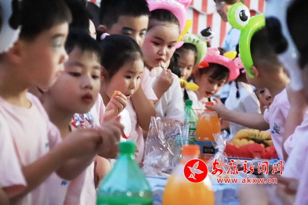 一段温馨的共话离别。演出结束后,幼儿园给小朋友们准备了各种美食,在五彩斑斓的夜光下自选几种美食,好朋友们在一起,品尝美食,聊聊幼儿园开心的事情,谈谈喜欢的东西。