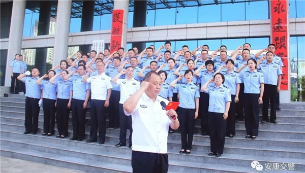 活动中,全体党员民辅警面向党旗,庄重举起右拳,重温入党誓词,用铮铮誓言表达对党的无限忠诚和为党和人民事业奋斗终身的决心。参加活动的全体党员民辅警满怀深情齐声合唱《没有共产党就没有新中国》《中国人民警察警歌》等歌曲,抒发了对党的无限热爱,歌颂在党的领导下,安康公安交警队伍奋进新时代、砥砺新征程的良好精神风貌。