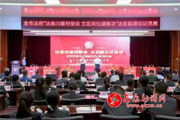 本网讯(通讯员 马小松 许萌)7月19日下午,安康中院举行全市法院系统“法徽闪耀担使命 立足岗位建新功”知识竞赛决赛。此项活动是安康市“喜迎党的二十大,强国复兴有我”群众性主题宣传教育中的一项,旨在学习贯彻习近平法治思想,进一步加强法官助理队伍建设,推动“两个确立”主题教育走深走实,以实际行动迎接党的二十大胜利召开。