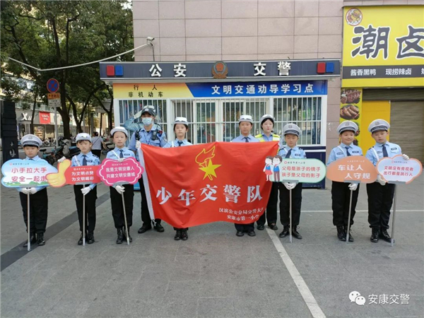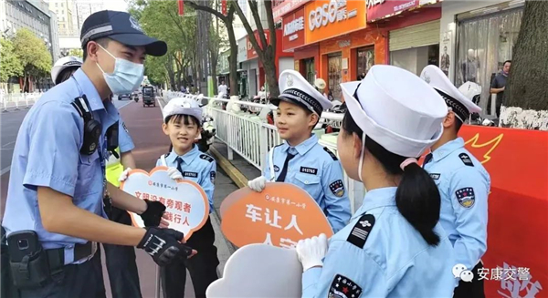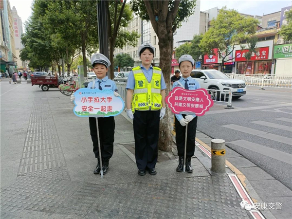 为深入推进全国文明城市创建工作,切实提高交通参与者的文明出行意识,8月15日,安康市公安局交警支队组织安康市第一小学“少年交警队”,在中心城区开展文明交通志愿劝导服务活动。