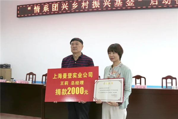今年5月31日上午,上海曼登实业有限公司董事长于登玉一行来到旬阳市小河镇留守儿童关护中心,为资助“设施更新项目”捐款5万元。