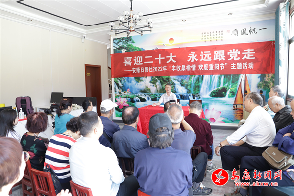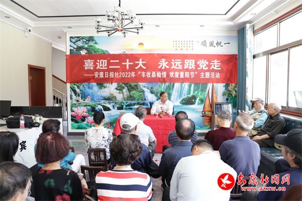 本网讯(记者 赵漪湉 王子悦)9月28日,为迎接党的二十大胜利召开,抒发老干部爱党、信党、护党的喜悦之情,安康日报社在重阳节前夕组织部分退休老党员和老干部,赴旬阳市仁河口镇水泉坪村开展“喜迎二十大 永远跟党走—2022年‘丰收桑榆情 欢度重阳节’”主题活动。