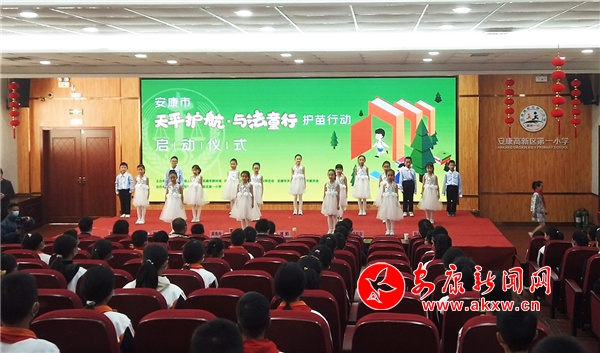 启动仪式在高新一小师生表演的手势舞《法治歌》、情景剧《法律呵护阳光少年》以及安康中院青年干警表演的诗朗诵《芳华》中拉开帷幕。随后,徐信选在致欢迎词中介绍了高新区校园法治教育工作情况。