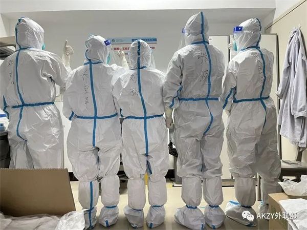 核酸检测是技术活更是体力活,医务人员穿着密不透风的防护服,在初冬的寒风中一站就是5个小时以上。随着近期核酸检测人数增多,工作量较往日成倍增加,大家毫无怨言,互相鼓励,坚持为前来检测的市民提供服务。