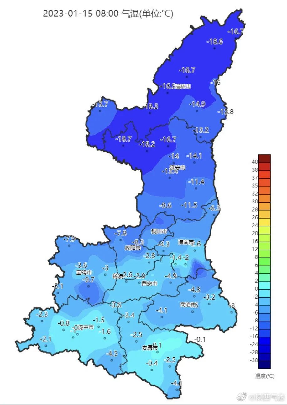 陕西省气象台2023年1月15日8时00分解除寒潮蓝色预警:目前冷空气影响已减弱,故解除寒潮蓝色预警。