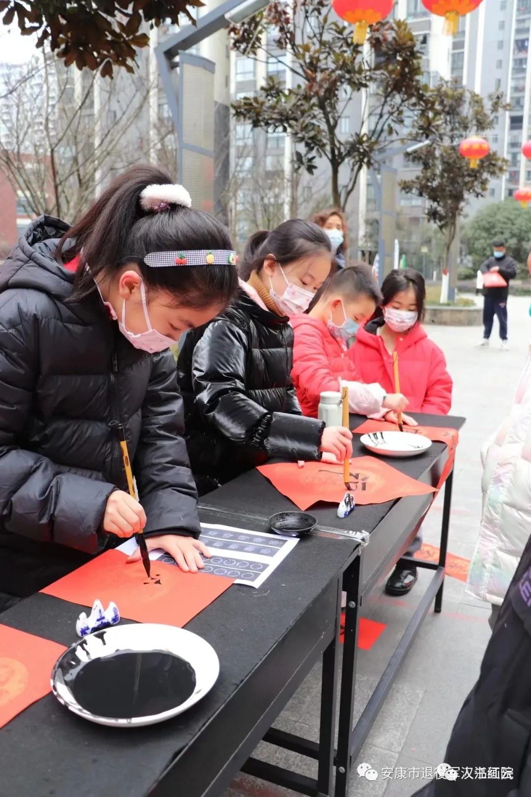 活动现场,翰墨飘香,其乐融融。书法老师铺开红卷,蘸好笔墨,笔锋婉转、妙语成双。活动中,在安康市退役军人书画院的书画家和培训机构的老师们指导下,孩子们也提笔挥墨,兴趣盎然。一幅幅春联带来了年的气息,不同风格的一个个福字,给人们送去了满满的祝福,大家泼墨挥毫,带着辞旧迎新的美好祝愿,为即将来临的春节增添了浓浓的喜庆氛围。