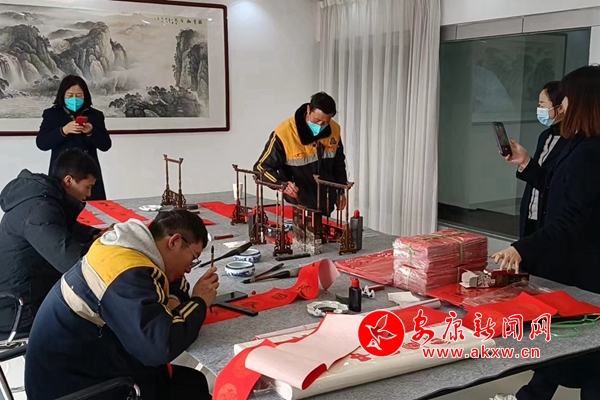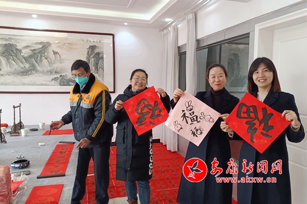 Wfj安康新闻网 图为该站书法爱好者集中写春联 Wfj安康新闻网