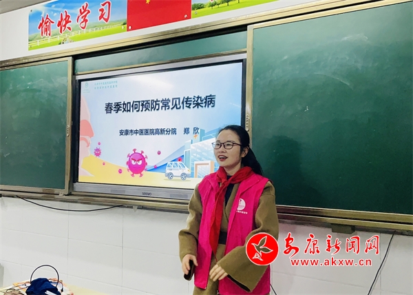 捐赠仪式后,安康市中医医院志愿者在教室内开展了知识讲座,为学生们讲解了春季如何预防常见传染病、七步洗手法等知识,孩子们听得津津有味,并和志愿者积极互动。