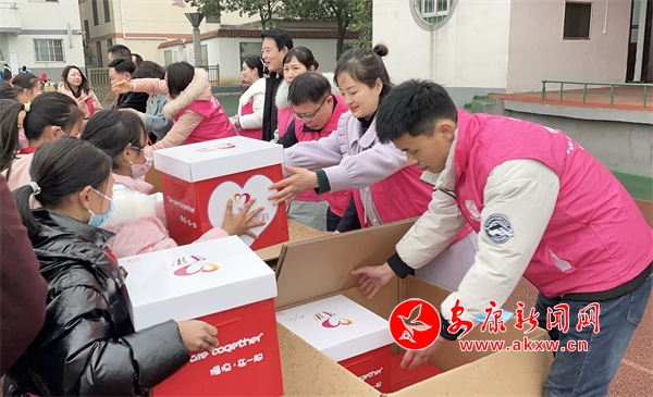 “这里面是新衣服、新鞋!”“哇,足球、跳绳,感谢叔叔阿姨!”操场上,孩子们迫不及待地打开暖流包、体育包礼盒,随后,红彤彤的脸上绽放出灿烂笑容。