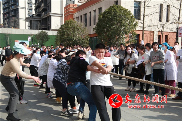 活动由“跳跃欢腾”跳绳比赛和“团结一心”拔河比赛两个环节组成,现场欢声笑语,精彩纷呈。在跳绳比赛中,各队参赛队员们全力以赴,穿梭跳跃,稳中求快,忙而不乱,一根大跳绳始终保持圆滑的弧线,连接着团结与友爱,传递着勇气与力量,演绎着奋斗与拼搏。当拔河比赛的哨声响起,呐喊声和喝彩声点燃了场上每一位队员的激情,各队参赛队员们咬紧牙关,紧握长绳,铆足力气,口号一声响、心往一处想、劲往一处使,棉绳中间红丝带不断左右移动,瞬间将整个活动推到了高潮。经过两个多小时的激烈比拼,行政后勤代表队获得跳绳比赛第一名,检验科、母婴康养中心代表队获得拔河比赛第一名。