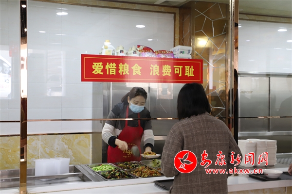 走进餐厅,“文明餐桌·厉行节约”“文明餐桌·光盘行动”“珍惜粮食·远离浪费”等宣传海报和标语或张贴在墙上,或摆放在餐桌上,十分醒目。据餐厅负责人介绍,除了常态化的氛围营造,餐厅还定期为食堂工作人员开展爱惜粮食、文明用餐等相关培训活动,通过建立微信用餐群,实行“报伙”用餐制度,定量制作餐品,实现精准供餐,同时号召用餐人员适量取餐、不浪费食物,从源头上杜绝粮食浪费。与此同时,食堂还在用餐群内组织开展“晒光盘照片 赢积分换礼品”活动,社内职工可通过在订餐群内晒“光盘照片”获得相应积分可兑换相应礼品。“今天兑换了一桶洗衣液,这是我第二次兑换礼品,虽然都是小礼品,但非常有意义,感觉既参与了创文过程,又享受了创文成果。”刚兑换完礼品的报社职工说道。