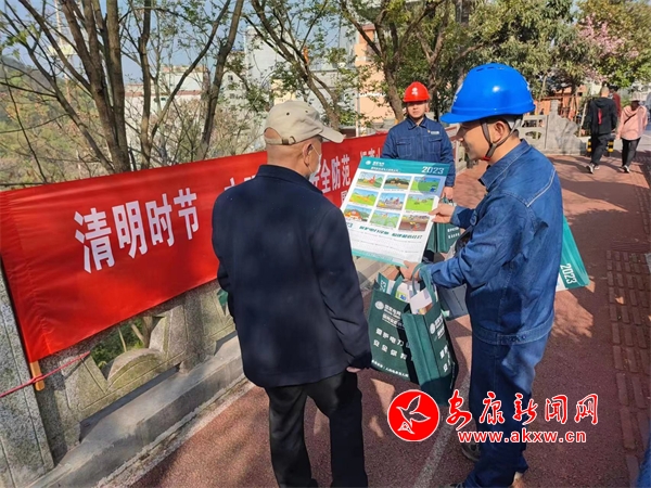 本网讯(通讯员 方兴宣)4月1日,在香溪洞景区内,国网安康供电公司工作人员提前出动,利用休息日向前来祭祀的群众发放电力设施保护宣传单,宣讲预防山火注意事项。