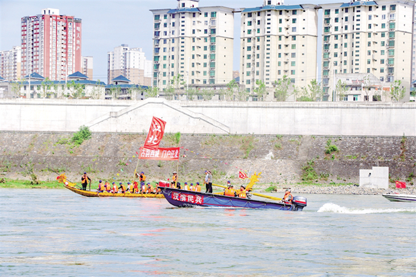 6月19日,汉滨区人武部组织民兵进行冲锋舟训练,护航龙舟节。 汪海玉 摄hRd安康新闻网