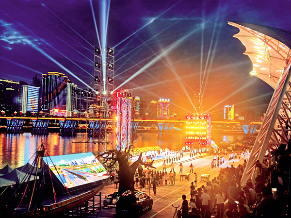 为保证第二十三届中国安康汉江龙舟节舞台夜间灯光照明及灯光秀,6月19日,灯光师正在加紧调试灯光。陈德模 摄hRd安康新闻网