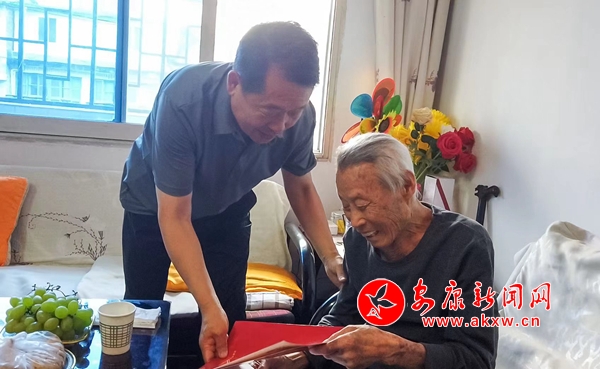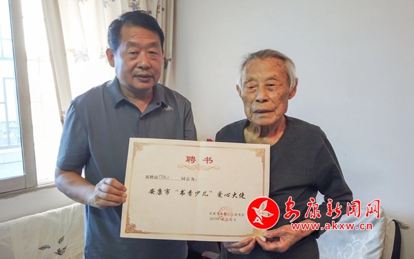 6月28日,安康市书香少儿读书会负责人来到汉阴县城,慰问93岁的老党员邝民三,聘请他为安康市书香少儿读书会“爱心大使”。