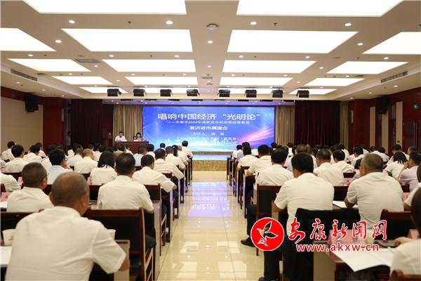 宣讲特邀市委党校哲学文史教研室主任、教授陈菊以安康市2023年成就宣传和形势政策教育等内容为主题,宣讲了党的二十大精神和习近平总书记来陕考察重要指示精神,及中、省一系列经济发展举措和我市出台的稳定经济增长的一揽子政策措施和重点任务,并结合新发展格局理论和安康发展实际,从新发展格局的战略意义、内在逻辑以及当前宏观经济形势等方面,向与会人员作专题讲授。鼓励参会企业抢抓发展机遇,全力以赴推进全市国资国企实现高质量发展。