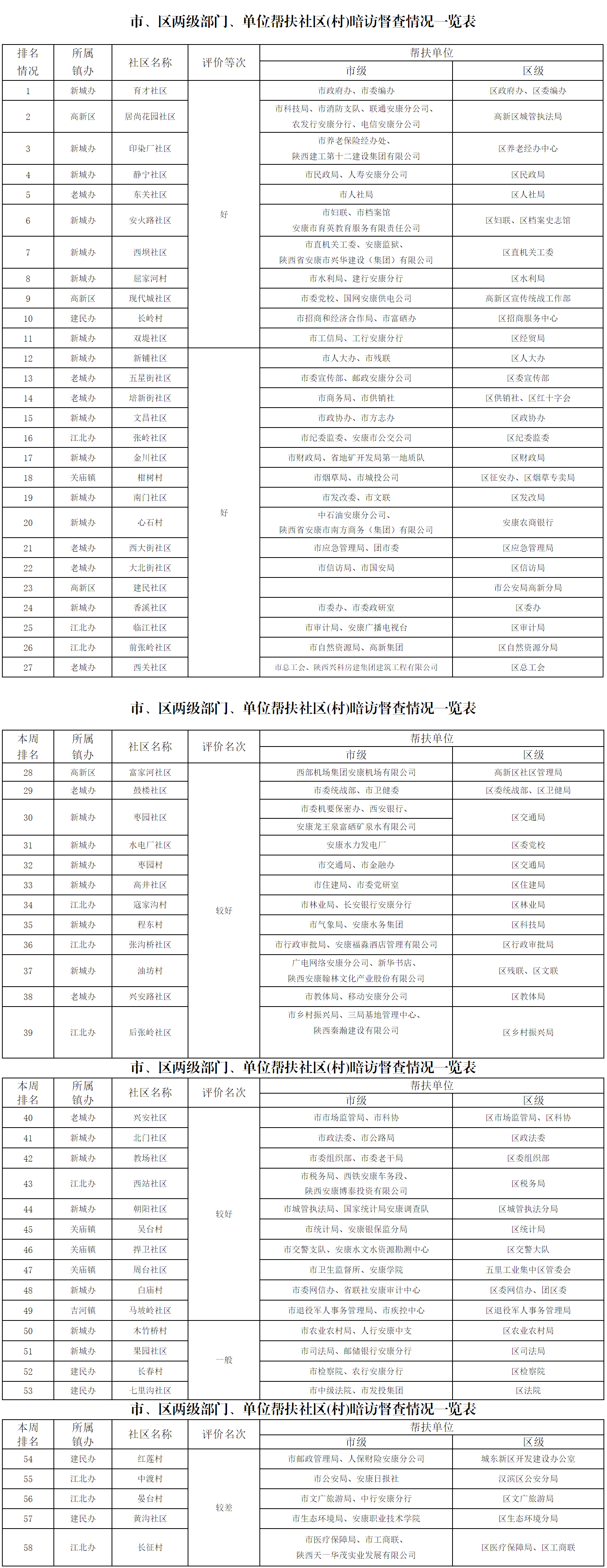 附:市、区两级部门、单位帮扶社区(村)暗访督查情况一览表