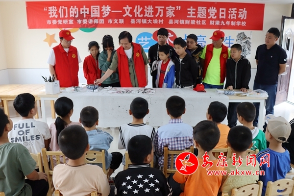 本网讯(通讯员 王婷)为积极响应中宣部号召,开展“我们的中国梦——文化进万家”活动,培养广大青少年文艺兴趣与爱好,促进学校素质教育持续推进,培育乡村文化建设后备军,9月21日下午,市文联、市委党研室、市委讲师团组织市区数个艺术门类十余位资深文艺家赴汉滨区县河镇财梁九年制学校开展“我们的中国梦——文化进校园”暨文艺“六进”志愿服务活动。