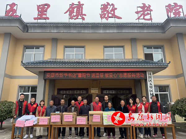 本网讯(通讯员 徐聪) 为践行社会主义核心价值观,弘扬中华民族“孝老爱亲”优良传统美德,切实提升精神文明建设工作,10月23日,安康市新华书店志愿者走进汉滨区五里区域敬老院慰问看望生活在这里的90多名老人,开展“重阳节 送温暖 献爱心”志愿服务活动。
