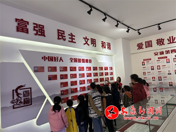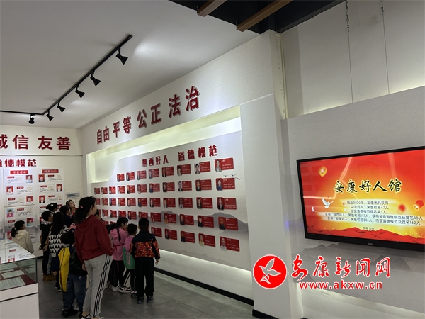 志愿者利用非遗互动墙组织孩子们学习《红军老祖》的故事,通过文字、图片以及志愿者的讲解让孩子们直观了解英雄事迹,了解到“红军老祖”这种尊称背后,寄托着人民群众对红军真诚、淳朴、久远的热爱和怀念。随后,志愿者带孩子们参观“安康好人馆”,“安康好人馆”分成前言板块、全国道德模范及中国好人板块、陕西道德模范及陕西好人板块、安康道德模范板块,培养和树立孩子们“诚实守信”“助人为乐”“孝老爱亲”“敬业奉献”“见义勇为”的文明意识。最后,志愿者将孩子们带到书画展厅,通过参观、讲解的方式,让孩子们感受传统文化的艺术魅力,希望孩子们学习艺术作品的构图、色彩搭配、线条等艺术手法并运用到自己的学习当中。