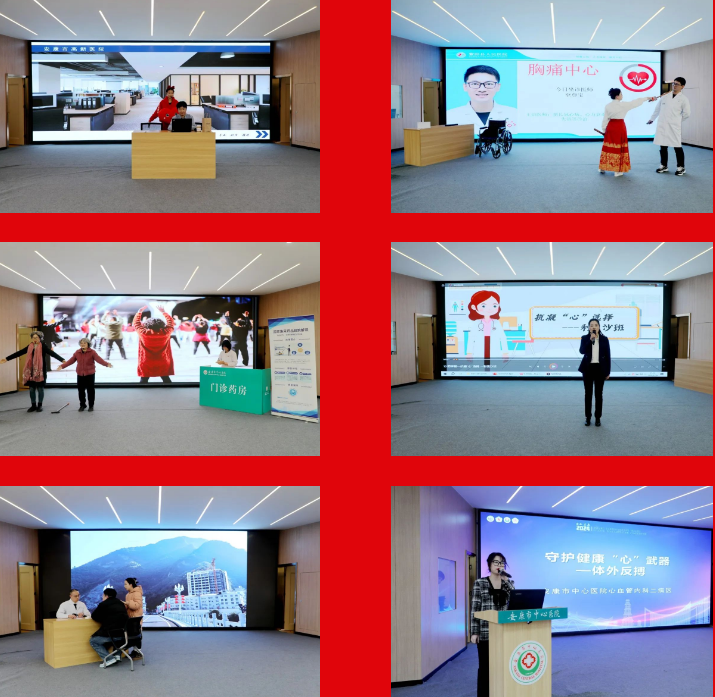 来自安康市中心医院、安康市中医医院、安康市人民医院、安康市高新医院、汉滨区第一医院、汉滨区第三人民医院、汉滨区中医医院、旬阳市人民医院、旬阳市中医医院、平利县医院、石泉县医院、紫阳县人民医院、白河县人民医院、镇坪县医院共18组参赛队通过生动有趣的科普演讲、情景剧、小品、快板等群众喜闻乐见的宣教方式传达心血管健康教育知识,宣传健康教育理念,用通俗易懂的健康医学知识进行科普宣传。