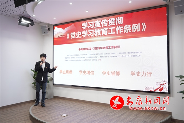 活动中,市委党校青年教师分享《中国共产党陕西安康历史》第一卷(1921-1950),讲述新民主主义革命时期的安康党史,通过情景演绎再现安康红色革命历史中的英雄人物,从红色文化遗存、革命先辈感人事迹中阐释中国共产党初心使命,引人深思、催人奋进。