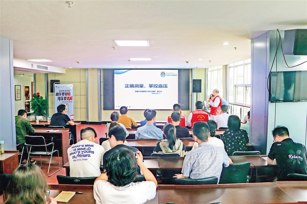 本网讯(记者 翟本荣/文 吴单/图)5月17日是第20个世界高血压日,当天上午,安康日报社邀请市中医医院高新分院相关专家,来单位开展“有效控制 健康长寿”高血压及康复医疗健康科普知识专题讲座。报网全体干部职工70余人参加。