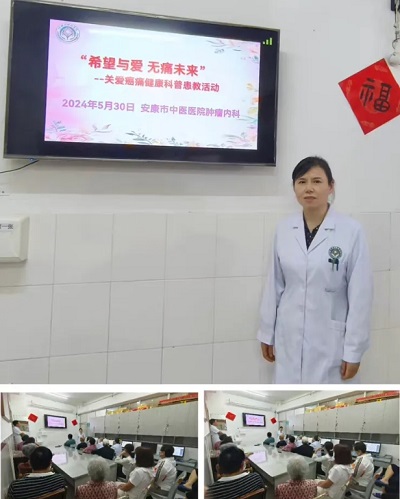 疼痛是人类的第五大生命体征,是癌症患者最常见和最难以忍受的症状之一,70%的晚期癌症患者伴有疼痛。为了更多地普及癌痛知识,造福疼痛患者,2024年5月30日下午市中医医院内科第三党支部肿瘤内科开展“党建引领践初心 爱心汇聚暖人心”——“希望与爱 无痛未来”关爱癌痛健康宣教活动。肿瘤内科主任严丽、副主任马红兵等医护人员、患者及家属共30余人参加了此次活动。