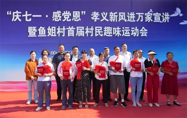 为庆祝中国共产党成立103周年,大力弘扬孝义新风,全力推进乡村振兴,6月30日,市教体局在恒口示范区鱼姐村举办“庆七一 · 感党恩”孝义新风进万家宣讲暨鱼姐村首届村民趣味运动会。市教体局机关党员干部、恒口示范区相关单位负责人、鱼姐村300余名村民参加活动。