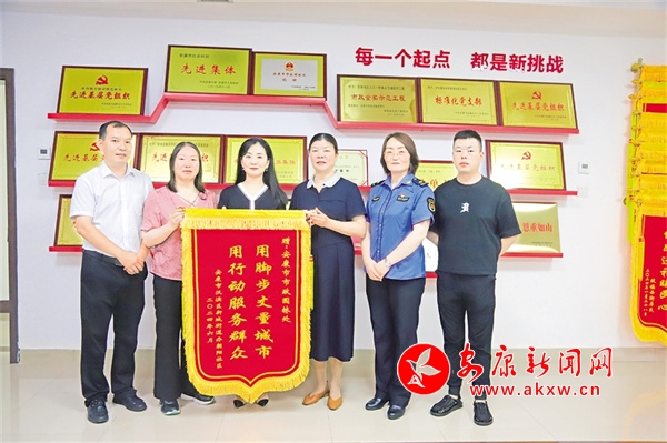 本网讯(通讯员 钱运立)“现在的朝阳街道路平整、排水通畅、绿化美观,你们用脚步丈量城市,解决的问题正是社区百姓心头所盼,我们代表辖区群众感谢你们的用心服务。”7月9日,汉滨区朝阳社区书记袁小红一行,专程为市市政园林处送来“用脚步丈量城市,用行动服务群众”的锦旗。