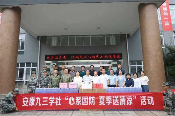 为庆祝中国人民解放军建军97周年,近日,九三学社安康市基层委员会联合安康市政协社法环资委,赴安康市民兵训练基地开展“心系国防夏季送清凉”活动。安康市政协社法环资委办公室主任王拥军,九三学社安康市基层委员会主委赵明莉、副主委高原、委员兼市政协富硒产业委员工作室第一召集人熊剑,安康市政协优化营商环境委员工作室第一召集人蔡刚等参加慰问活动。