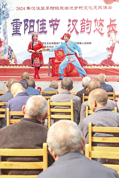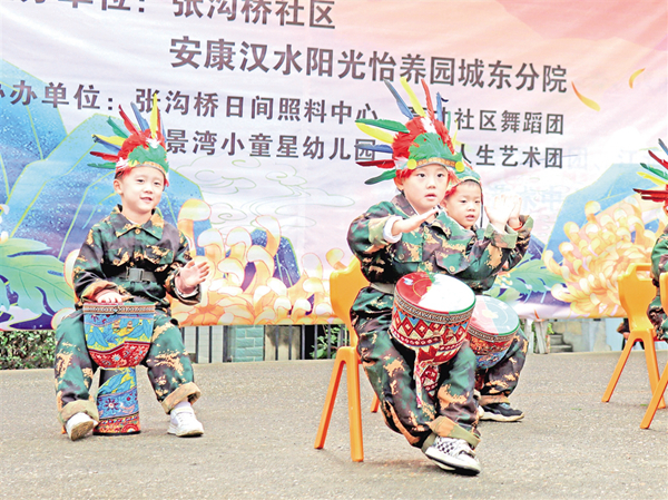 10月10日,安康汉水阳光怡养园城东分院携手江北街道张沟桥社区,举办了一场别开生面的文艺演出,为这里的老人送上节日祝福。 郑团吉 摄