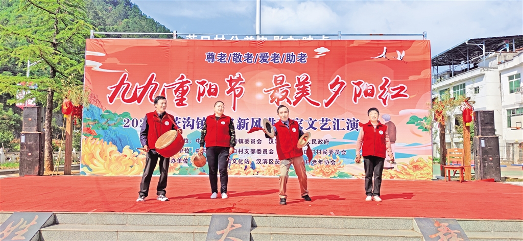 10月9日,汉滨区文旅广电局联合茨沟镇茨口村举办了“九九重阳节 最美夕阳红”孝义新风进万家文艺活动。活动以“尊老、敬老、爱老、助老”为主题,茨沟镇茨口村老年协会分会还为本村98名老年人统一购买了红马甲和过冬的皮鞋,让老人们度过一个幸福快乐的重阳节。 余迟 摄