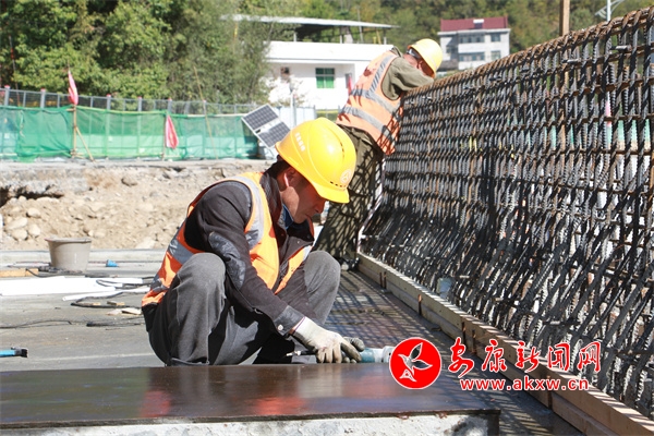 10月22日,记者在国道210线宁陕县中医医院路段现场看到,工程机械车辆来回穿梭,正在对路基进行夯实,工人师傅们手持钢筋,加紧编织挡墙防护网。