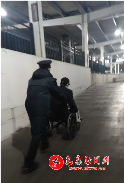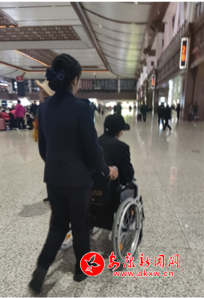 本网讯(通讯员 毛明雪)11月18日,陈先生在西安省城医院化疗出院后,订了晚上从西安回至安康的T248次列车12车。在候车厅陈先生病痛难忍,行动不便,无法正常检票进站。眼看人们纷纷检票进站了,陈先生十分着急,陪同陈先生的家人抱着试着看的心态向检票处的工作人员说明情况,工作人员立刻用对讲服务系统为陈先生安排了专职工作人员,工作人员用轮椅推着陈先生经过绿色通道送至12车。