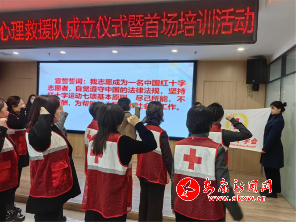 为助力健康安康建设,进一步加强安康市红十字心理救援能力建设,提升广大群众心理健康水平,2024年12月31日上午,安康市红十字会联合市人民医院举办安康市红十字心理救援队成立仪式暨首场培训活动。图为红十字心理救援队队员现场宣誓和开展首场培训。(郑时根 摄) Cuy安康新闻网