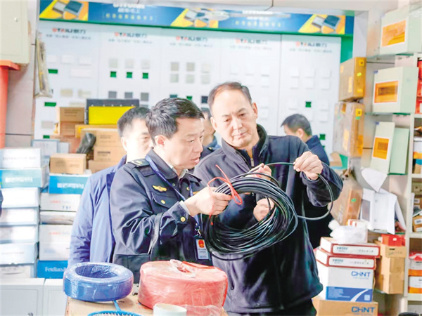 执法人员对电线电缆企业进行检查